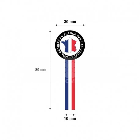 Mention : « Miel récolté en France par l’apiculteur » et décorée d’une bande bleu blanc rouge et de la carte de France.