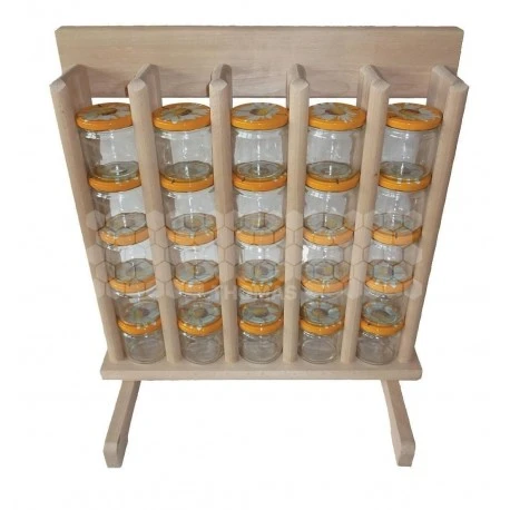 Ce présentoir en bois massif composé de 5 colonnes est très décoratif.. Il est idéal pour la présentation des pots chronig 500 grammes TO82, de diamètre 85mm maximum.